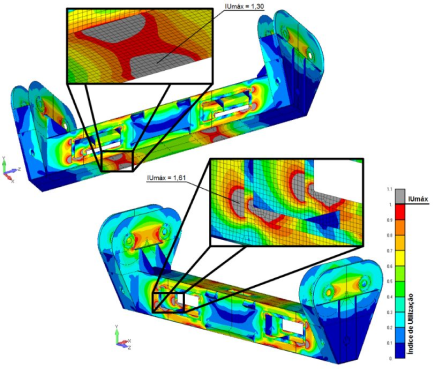 As aplicações da análise por elementos finitos incluem análises lineares, estáticas, dinâmicas, de flexibilidade, de estabilidade, de ligações e de fadiga. Esse tipo de simulação deve ser realizada a partir do modelo tridimensional em softwares CAE (Computer Aided Engineering), como o Nastran, Ansys e o PROCAL.